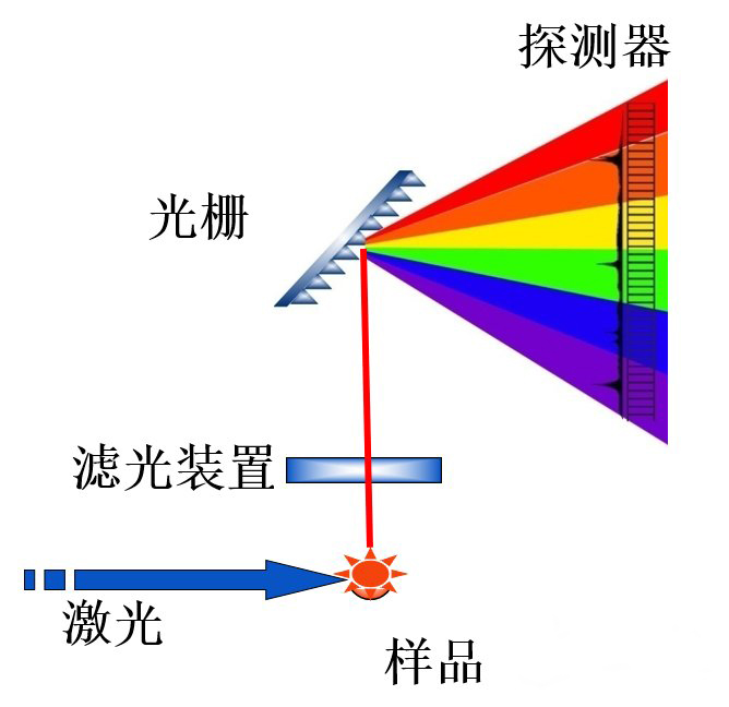 當來自光源的高強度入射光被試樣分子散射后,大多數散射光與入射激光具有相同的波長(或顏色),這種散射稱為瑞利散射。然而,還有極小一部分(大約占1/107散射光的波長(或顏色)發生了改變,其波長的變化由試樣分子的化學結構所決定,這部分散射光稱為拉曼散射。
