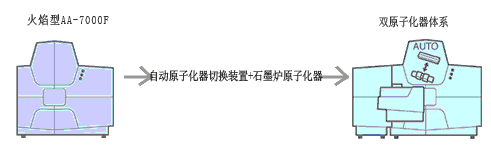 選件AAC-7000可實(shí)現(xiàn)火焰原子化器和石墨爐原子化器的集成,并使得二者的切換方便迅速。* AAC-7000不能安裝在AA-7000G上。