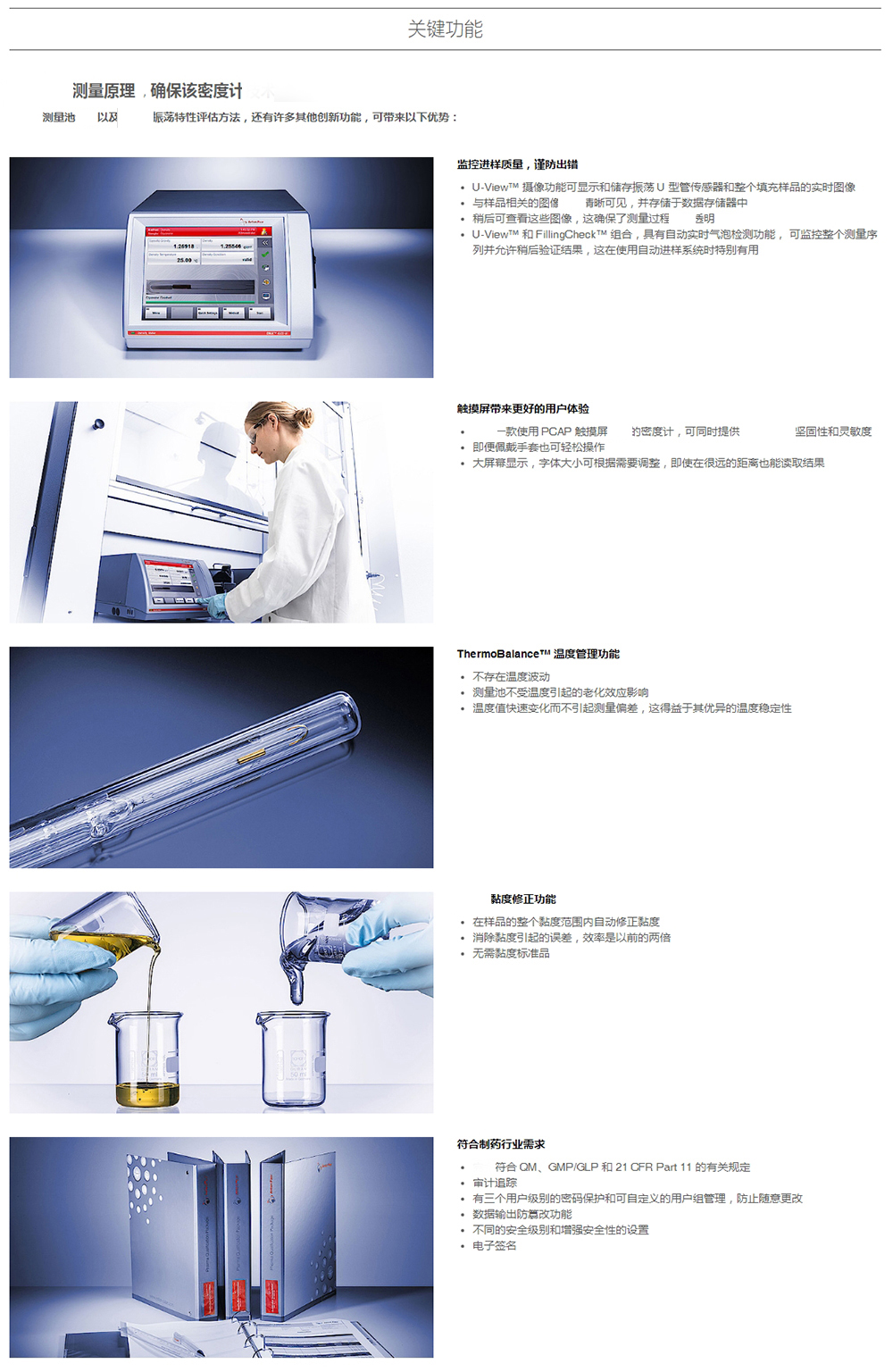 該密度計廣泛應用于要求提供可靠準確的 5 位密度結果的領域。 DMA 4500 M 運用Pulsed Excitation Method,在全面了解振蕩特性基礎上,給出穩定的密度測量結果。該方法采用黏度修正,效率快。自動氣泡檢測功能,有助于控制進樣。通過這種方法,配合內置智能系統,即便測量用戶頻繁變化,進而進樣方法、濕度、空氣壓力和設備條件隨之改變,也不會影響操作與結果。