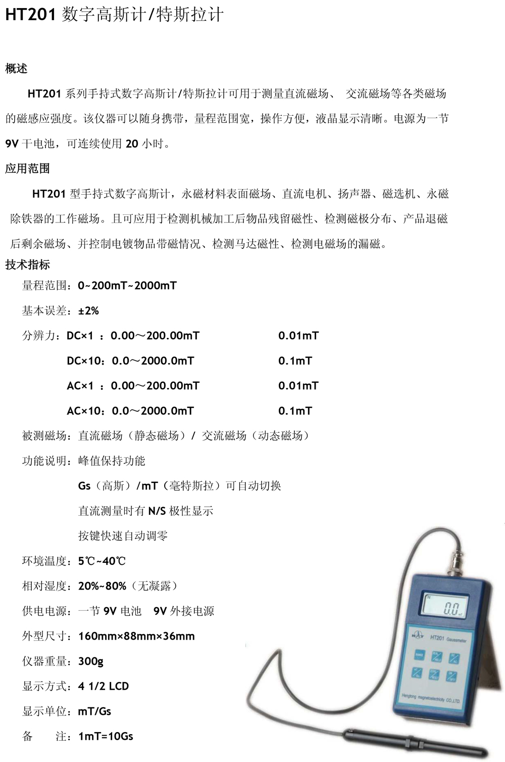 亨通高斯計HT201